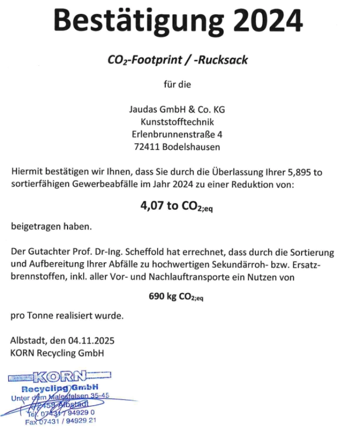 Bestreben zur Nachhaltigkeit der Fa. Jaudas: